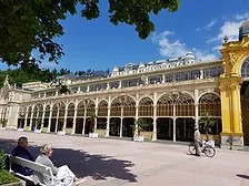 Tag 2 begann, ja womit wohl? Natürlich mit Essen. Ein üppiges Frühstücksbuffet machte uns fit für den Tag und die Fahrt nach Franzensbad und Marienbad in Tschechien. Der von uns engagierte Führer, Herr Anton Vater, führte uns über ziemlich leere Straßen durch die herrliche Natur zuerst nach Franzensbad. Seine Bemerkung, Gabi könne hier ruhig mitten auf der Straße fahren, hier käme eh kein Auto, wurde durch einen dicken Lastwagen ziemlich abrupt konterkariert. Aber unsere Fahrerin konnte nichts aus der Ruhe bringen. Ansonsten waren seine Ausführungen sehr informativ und unterhaltsam. Zu einem kurzen Aufenthalt stoppten wir an einem Asia-Markt. Ein bisschen wie der Plutenmarkt auf der Eitorfer Kirmes, aber viel größer. Hier gab es alles mögliche, aber zu Kronen-Preisen. Franzensbad ist ein kleines Bad mit schönen alten Häusern und gepflegten Parkanlagen. Allerdings waren außer uns sehr wenige Menschen unterwegs. Lt. unserem Führer sind die Bäder nur zu 60 % ausgelastet. Marienbad ist da schon eine andere Welt. Größer, mit vielen Hotels und Restaurants und mehr Shoppingmöglichkeiten. Wir hatten uns zu Mittag im Hotel Bohemia angemeldet. Tolle Fassade, tolle Halle und ja, das Essen war auch ganz in Ordnung. Das Personal hatte den Servicegedanken noch nicht so recht verinnerlicht, aber wir waren ja auch nur Durchgangsverkehr. Da kann das überall mal vorkommen.